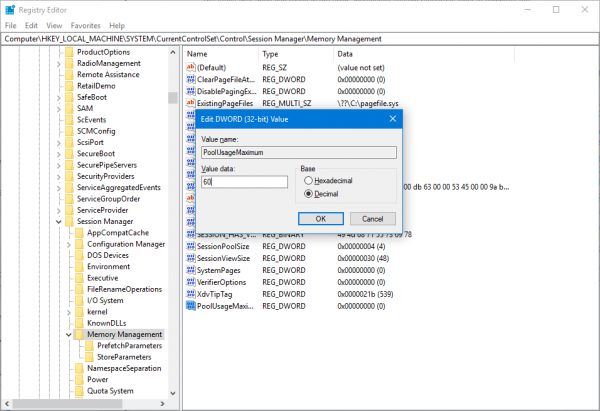 HKEY_LOCAL_MACHINE\SYSTEM\CurrentControlSet\Control\SessionManager\Memory Management