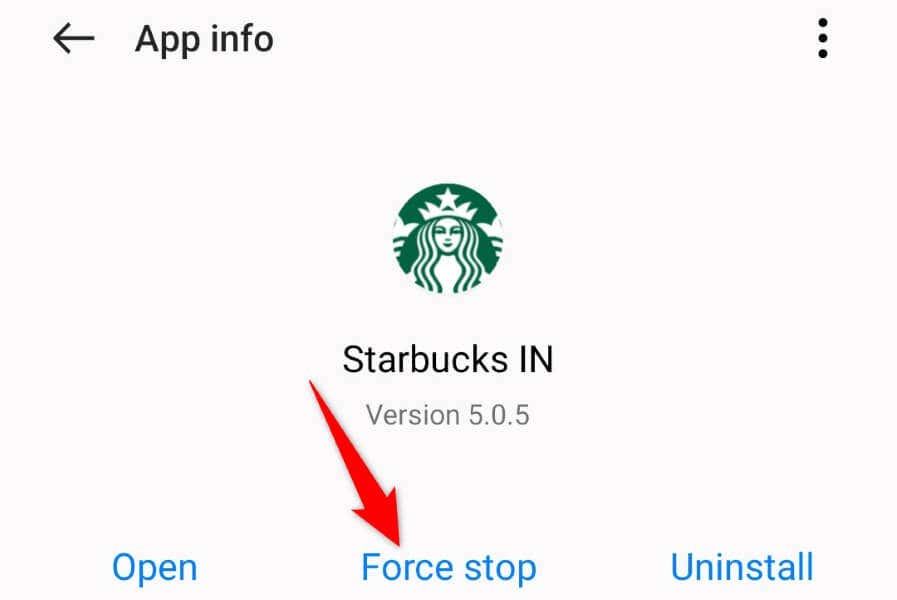 - Tap and hold on Starbucks in your app drawer and select App info.